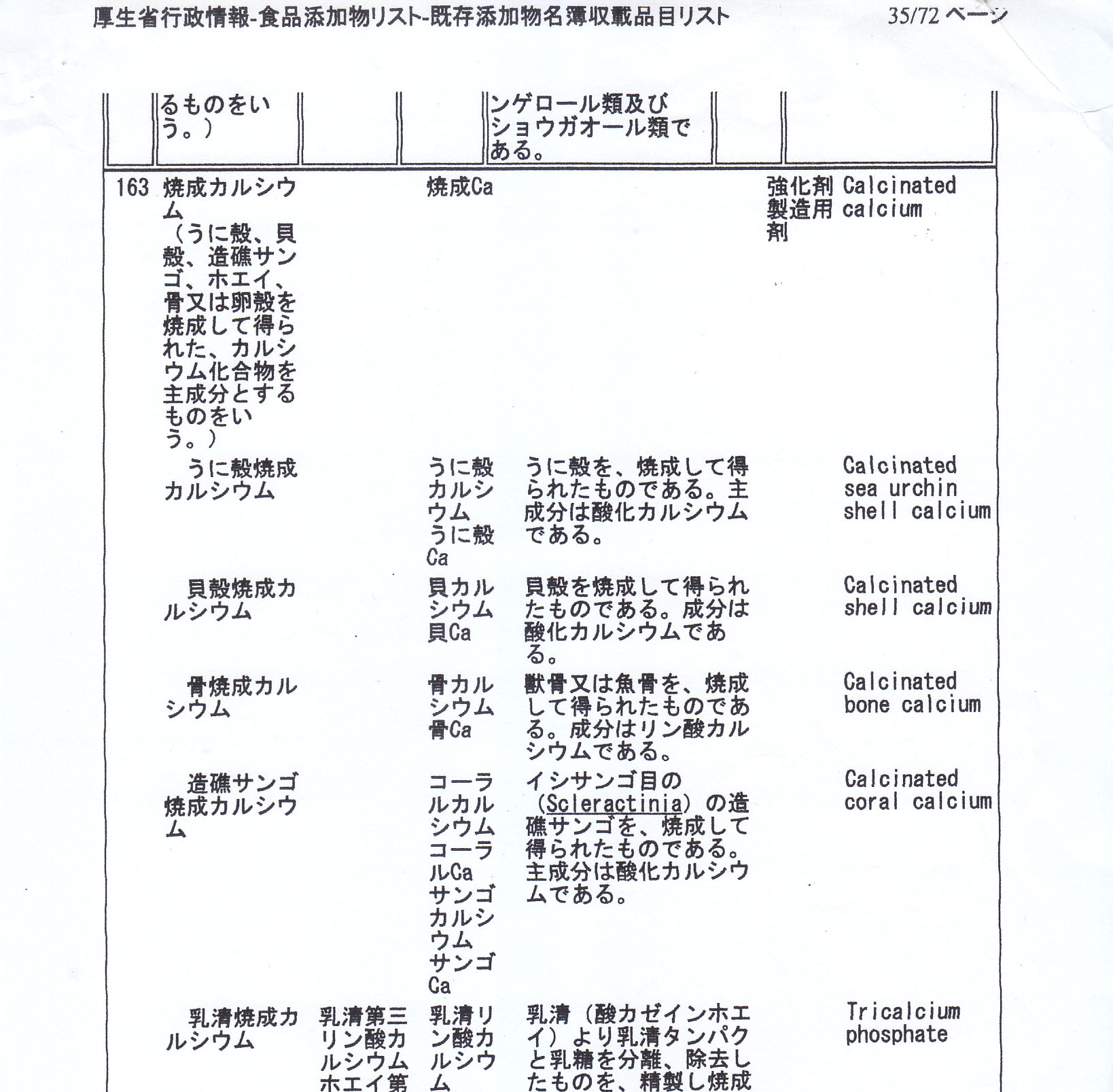 焼成カルシウム(貝殻、骨、サンゴ、卵の殻、等)の原材料は異にしても、全て水酸化カルシウム〔Ca(OH)2〕です。