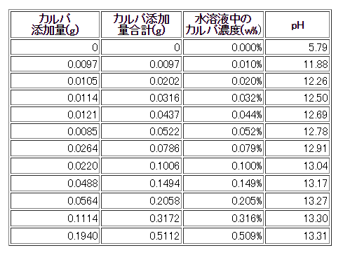 カルパの最大の特徴は、Ph値が13.4も出る事です。(別紙グラフ参照)